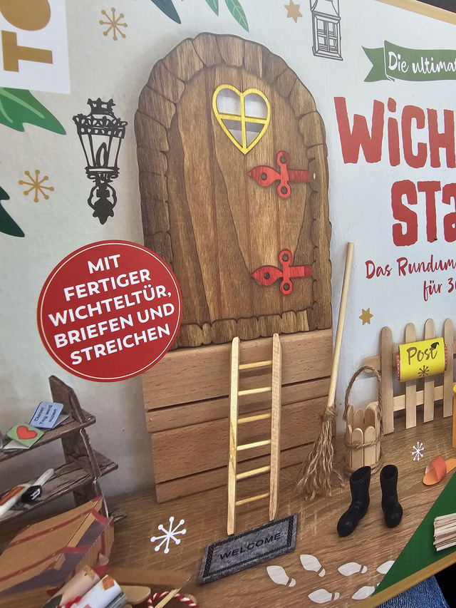 Die umfangreiche Box bietet alles, was du für eine bezaubernde Wichteltradition brauchst: Anleitungsbuch mit Planer: Anleitungen für die perfekte Wichteltradition. Ein Planer, um alle wichtigen Termine und Ideen festzuhalten. Inspirationen und Bastelideen: Lustige Streichideen und kreative Vorlagen für die Gestaltung deiner Wichtelwelt Wichteltür und Accessoires: Verleihe deinem Wichtel einen eigenen magischen Eingang. Mit dem passenden Material zur Umsetzung gelingt dir im Nu eine zauberhafte Atmosphäre. Wichtelbriefpapier: Gestalte persönliche Botschaften auf hübschen Briefpapieren. Das erwartet dich: Anleitungsbuch mit 32 Seiten Fertige Wichteltür mit verschiedenen Accessoires Wichtelbriefpapier